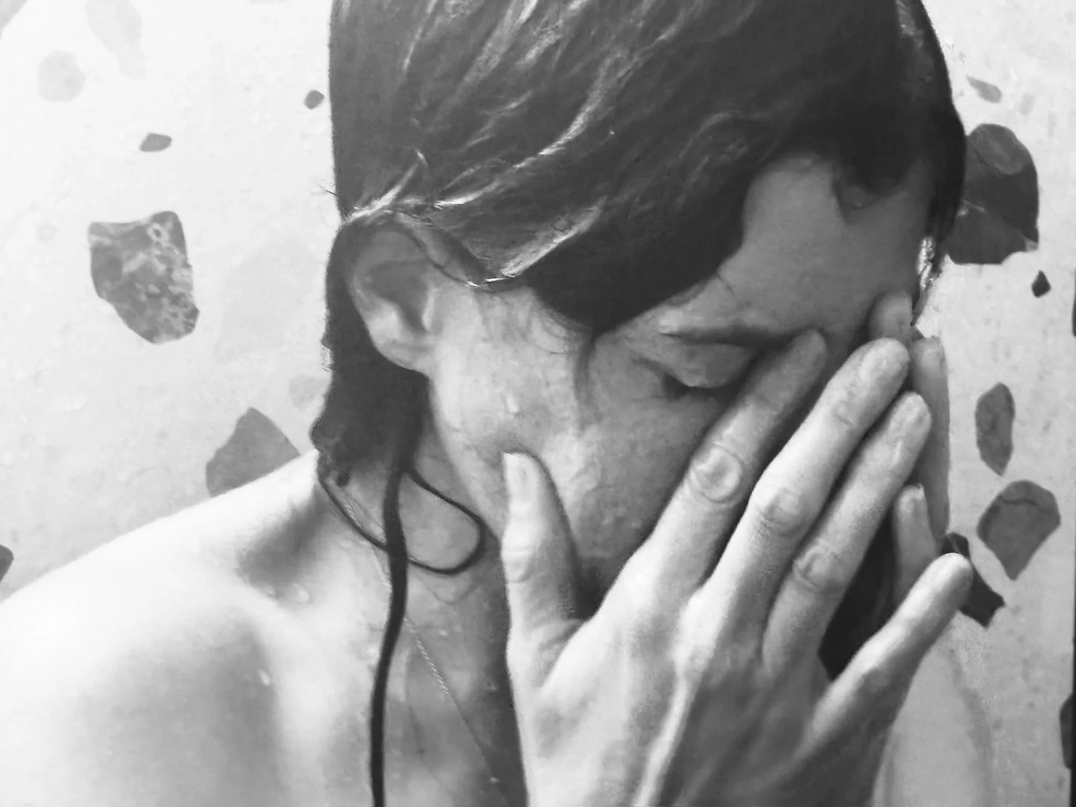 Constricted by despair, as if held